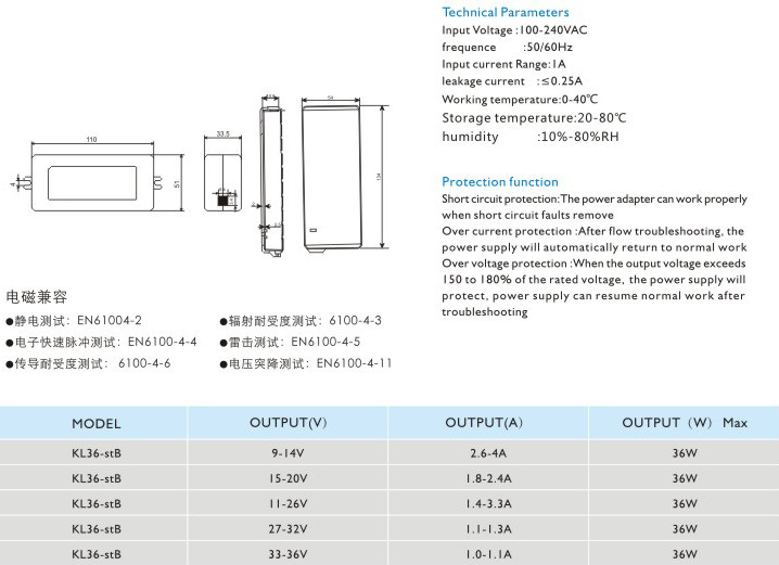 過(guò)流保護(hù):過(guò)流故障排除后,電源將自動(dòng)恢復(fù)正常工作 過(guò)壓保護(hù):當(dāng)輸出電壓超過(guò)額定電壓的150~180%時(shí),電源將保護(hù),故障排除后電源能恢復(fù)正常工作 輸入電壓:100-240VAC 頻率:50/60Hz 輸入電流:1A 漏電電流:<0.25A 工作溫度:0-40℃ 貯藏溫度:-20-80℃ 濕度:10%-80%RH" />